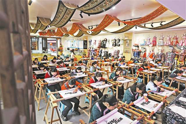 10月26日,彭水縣蚩尤九黎城苗繡館,繡娘們正在參賽。 當日,彭水縣舉行以“針舞苗鄉 線繡傳承”為主題的第三屆彭水苗繡技能大賽,吸引全縣“彭水苗繡”代表性傳承人、苗繡學員、刺繡愛好者等100余人參加比賽?!?/p>