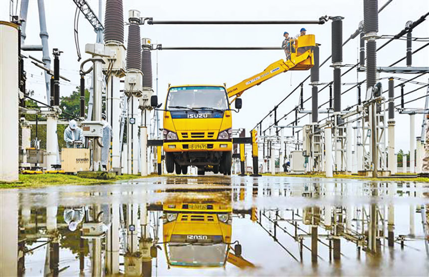 11月3日,南岸區,國網重慶市南供電公司220千伏花紅變電站內,電力工人正在檢修設備。日前,市南供電公司啟動電力設備綜合檢修,對站內的核心設備進行“全面體檢”和升級換代?!?/p>