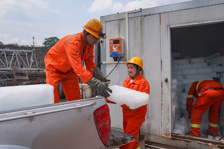 人民網重慶8月8日電 連日來,重慶主城持續高溫,全長 7.2 公里的成渝中線人和隧道,在中鐵隧道局全體參建人員的共同努力下目前已經掘進過半。為了關心關愛建設者,項目部新購一臺制冰機,專人負責向隧道內的各作業點投放冰塊,起到物理降溫的效果,避免發生中暑等情況?!?/p>