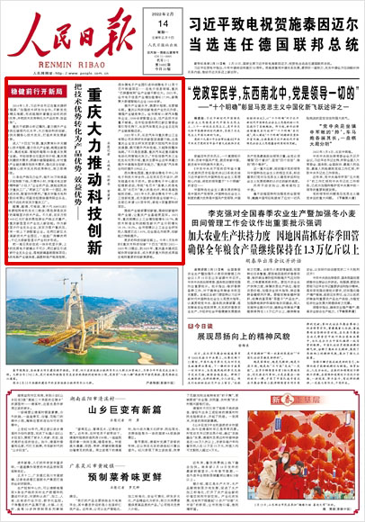 重慶干部群眾牢記囑托,著力提升產業鏈供應鏈現代化水平,大力推動科技創新,加快關鍵核心技術攻關,打造未來發展新優勢。
