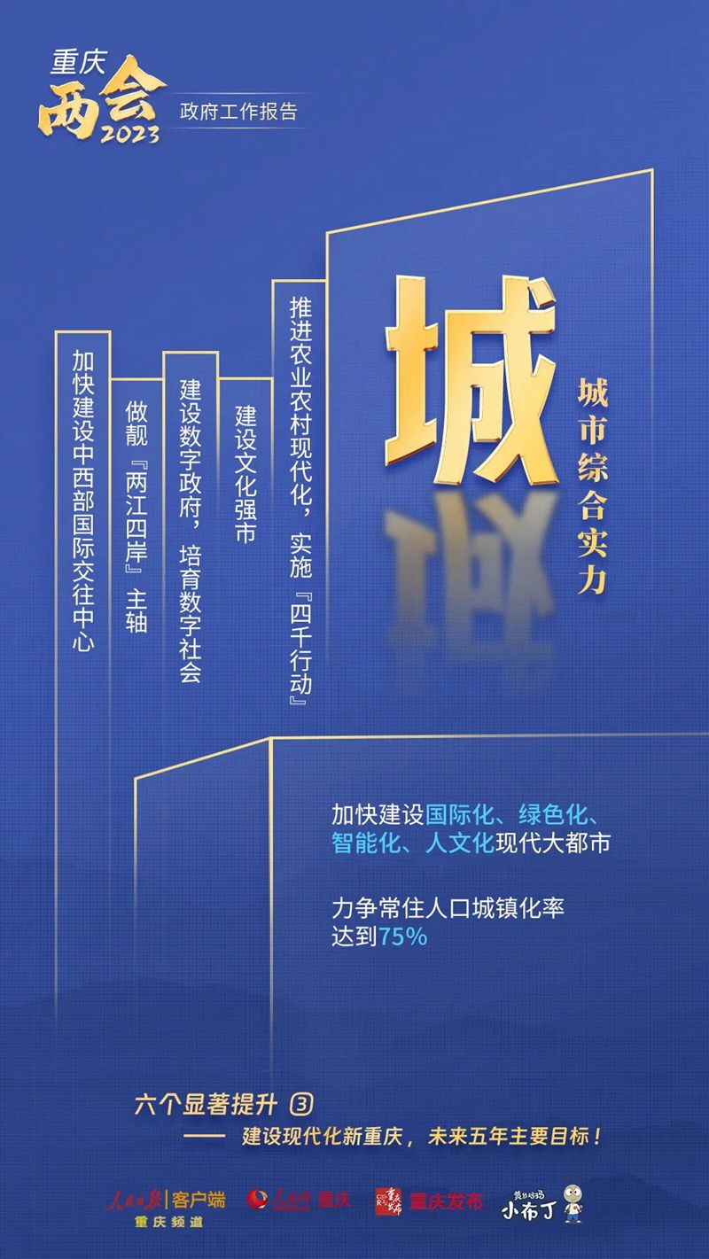 報告指出,過去五年,重慶堅定不移轉變發展方式,高質量發展之路越走越寬廣。全市地區生產總值預計從2017年的2.01萬億元增加到2.9萬億元以上、年均增長5.3%左右...