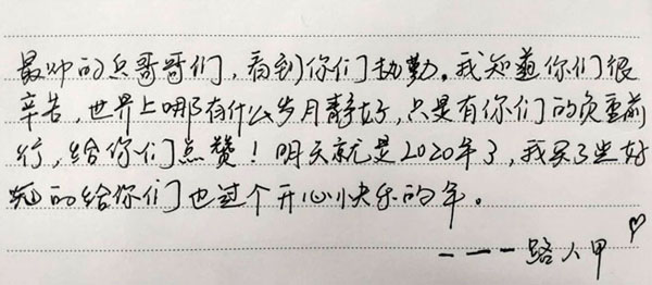 一位執勤戰士讀過留言后,寫下一段打油詩致謝“路人甲”女孩: