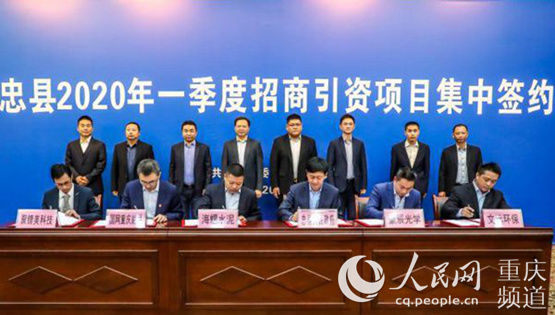 人民網重慶4月2日電 忠縣2020年一季度招商項目3月30日舉行了集中簽約活動。本次簽約的項目包括年產4.5億顆5G手機攝像頭、年產2萬噸塑膠環保建材、日產30萬支高端鋰離子電池等10個項目,總投資約23億元。