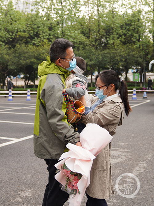 “兒子好多了!57天在孝感抗疫,14天集中康養,隨著醫療隊解散,大家回到自己的工作單位。在重慶市中醫院,妻子早早地帶著兒子來迎接殷立士回家了!靶睦飫e提有多開心激動了!毕挛缙拮踊貑挝簧习嗔,殷立士在家和兒子度過久違的親子時光!拔液蛢鹤悠綍r就很親近!眱鹤酉矚g運動,但個子小,殷立士在家用羽毛球拍陪著他玩氣球,有時候,爺倆只是靜靜地待在一起,他給兒子講故事,都覺得特別窩心。
