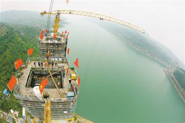 4月2日,萬州新田長江大橋主塔順利封頂。(中交一公局集團萬州環線高速項目部供圖)