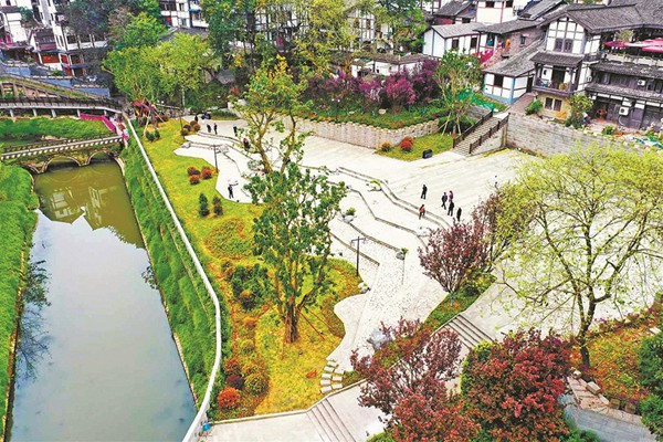 為將治理段打造成與磁器口古鎮相適宜的景觀,該公司根據地形特點,將治理區域分成9個區域,按照古韻尋蹤、古木交柯、綠影觀瀾、獨釣雙臺、花海融春等特色打造。(記者 楊永芹)