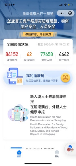 經過7天的連夜奮戰,“渝康碼”于2月19日正式上線,覆蓋全市范圍。市民可憑“渝康碼”出入小區、辦公樓宇、商場市場、交通卡口、醫院、公共交通、學校等場所。