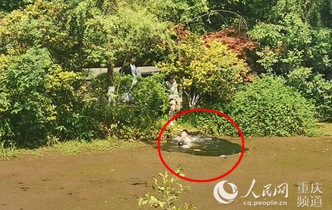 4月9日下午14時左右,在重慶市照母山森林公園里,一名小男孩不小心掉入隱蔽的水塘中,眼看頭部漸漸被塘水淹沒,生命危在旦夕。