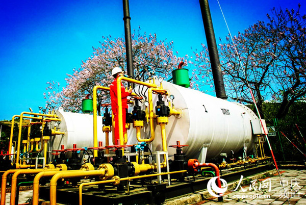 中國石化江漢油田涪陵頁巖氣田焦頁1號集氣站,站內員工正進行日常巡檢工作。蔣瑜 攝