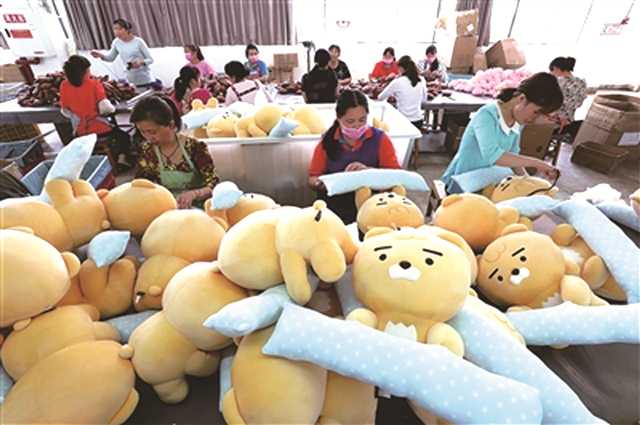 5月18日,梁平工業園區內的重慶匯森玩具有限公司,工人在加工出口韓國的玩具。公司吸納了200多名困難群眾務工,讓他們在家掙錢和照顧家庭“兩不誤”,是梁平區扎實做好“六穩”工作的縮影。