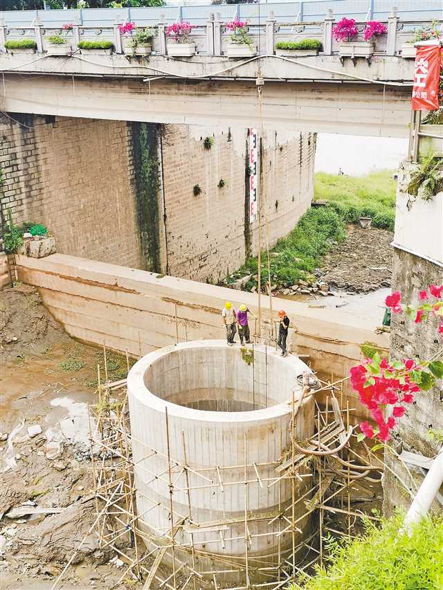 朱正榮介紹,黃溪河泵站溢流整治項目施工中,面臨河床淤泥特別厚、樁基施工流沙嚴重等諸多困難。此外,河底與岸上高差10余米,大型機械設備無法吊運作業,基本只能靠人力作業,但施工過程中黃溪河又經常漲水,危及人員安全,施工進度時常被打斷。同時,施工過程還要兼顧周邊居民的生活和休息,盡量減少施工噪音。