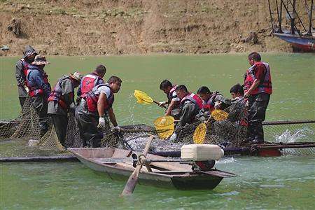 工人在捕撈“萬峰生態魚” 受訪者供圖