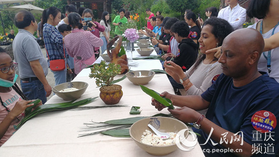 在包粽子比賽中,來自韓國的安洪杰獲得了第一名!耙郧爸怀赃^粽子,但一直不知道是怎么做的。今天第一次包的時候覺得很難,后來掌握了技術,就越包越容易,已經掌握了!卑埠榻苷f,能親身體驗中國的傳統文化,很開心,巴南鄉村發展得很成功,很有特色,生活在這里會幸福感滿滿。