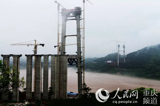 油溪長江大橋南橋墩封頂現場。江津區委宣傳部供圖