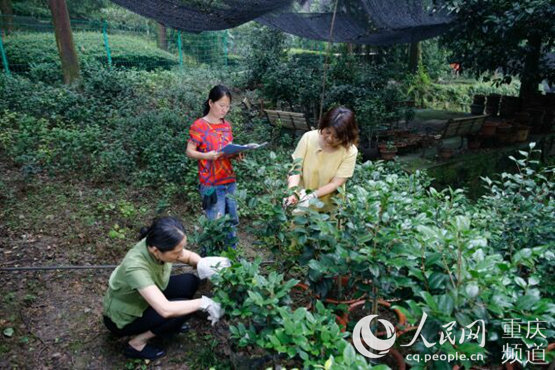 科研人員正在細心培育最新品種茶花。重慶南山植物園供圖