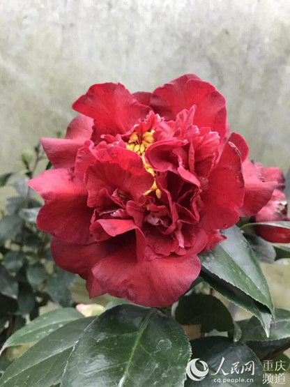 另外三種分別是粉紅早牡丹、火紅南山和皇家牡丹。粉紅早牡丹,樹冠枝葉斜直向上生長,花深粉紅色,牡丹型,明艷動人;火紅南山,花如其名,系川山茶“川芙蓉”播種,實生苗選育而得,遠遠望去猶如一團團火焰;皇家牡丹,花黑紅色,具蠟質光澤,高貴典雅。