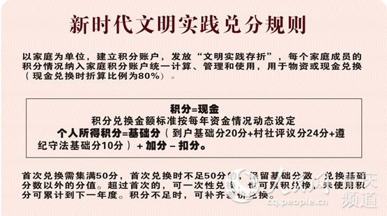 這本特殊的存折和我們常見的銀行存折樣式相仿,但是卻不能存錢取錢,卻能存取“文明”。翻開存折內頁,示范學習、文明養成、三業發展、志愿服務等日常積分內容和積分事項躍然紙上,每一項都直接關系著明通群眾的文明積分余額。