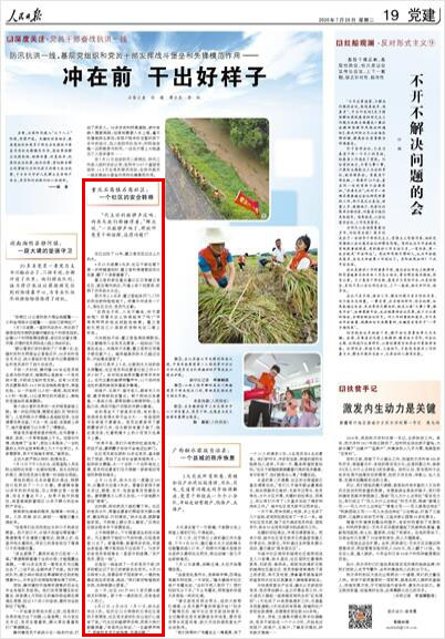當前,全國防汛進入“七下八上”階段,形勢嚴峻。關鍵時刻顯擔當,基層黨組織和黨員干部充分發揮戰斗堡壘作用和先鋒模范作用,團結帶領群眾巡堤搶險、轉移安置、恢復秩序,把黨的政治優勢、組織優勢、密切聯系群眾優勢轉化為防汛救災的強大政治優勢,千方百計守護人民群眾生命財產安全,用實際行動踐行初心和使命。