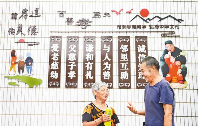 7月30日,村民趙立熊(右)和鄒開全談起自家的3個孝順兒女,臉上掛滿了笑容。