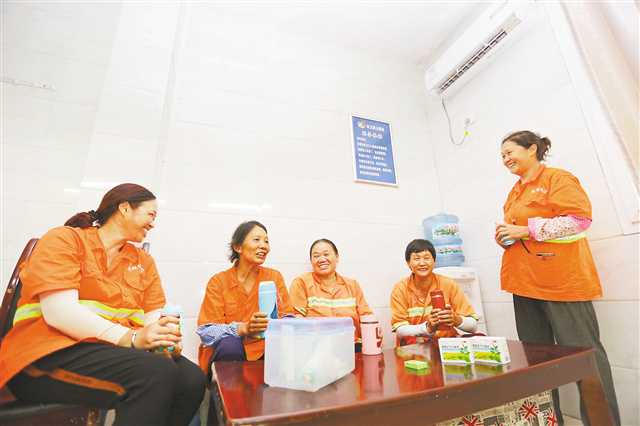 近日,萬盛經開區盛興路附近的戶外勞動者驛站內,環衛工人正在納涼休息、飲水解渴。通訊員 王瀘州 攝/視覺重慶