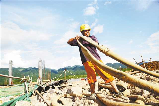 8月6日,工人在黔江武陵山機場擴建工程工地施工。特約攝影 楊敏/視覺重慶
