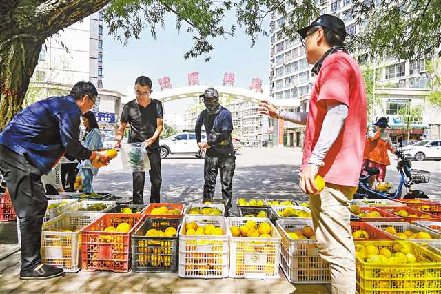 “這瓜好甜!薄盀鹾D芊N出華萊士甜瓜?還是在沙漠里種出來的!薄8月10日上午,在內蒙古烏海市德順祥庭小區對面,10余筐黃燦燦的華萊士甜瓜擺上街頭,很快就吸引了不少市民駐足品嘗、購買。