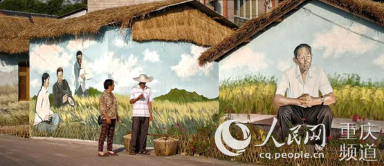 “彩繪的圖案是我們根據拾萬鎮的特色,特地請四川美術學院的學生們彩繪的圖案。這幾幅圖,充分還原了袁隆平老先生曾經在大足工作時的情景,”王地生一邊走一邊介紹。