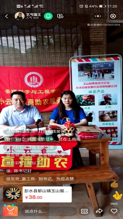 玉山村村委會干部和重慶工商大學管理科學與工程學院的領導也紛紛上陣,為玉山農產品打CALL。本次直播共吸引了2000多人觀看,獲2萬點贊,實現了玉山農產品的成功售賣。