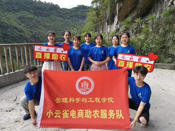 8月15日下午,重慶工商大學管理科學與工程學院小云雀服務隊的大學生們化身帶貨主播,在直播間開啟網絡直播帶貨。