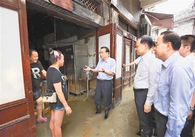 在洪水尚未完全退去的磁器口商業區,李克強一連走進多家商戶,并與群眾和游客交流,了解因疫情和水災造成的商家損失,考察消費和旅游恢復情況。他說,加快服務業全面復業帶動消費擴大,對于鞏固經濟恢復性增長態勢至關重要,要在做好常態化疫情防控下,發揮國家政策扶持作用,助力企業和商戶渡過難關,促進旅游等服務業正常經營,釋放巨大消費潛力。