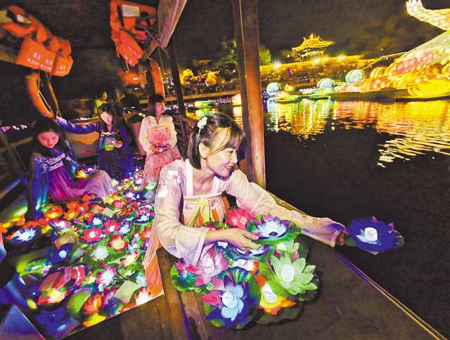 8月22日,榮昌區萬靈古鎮,身著夏布漢服的女孩在瀨溪河上放河燈許心愿。當日,榮昌第七屆七夕河燈旅游文化節開幕,本屆旅游文化節分為夏夜運動、室內外音樂節、淘寶集市、點亮繁星四大板塊,將傳統與流行相結合,讓市民在歡度周末的同時感受傳統文化的魅力。首席記者 崔力 攝/視覺重慶