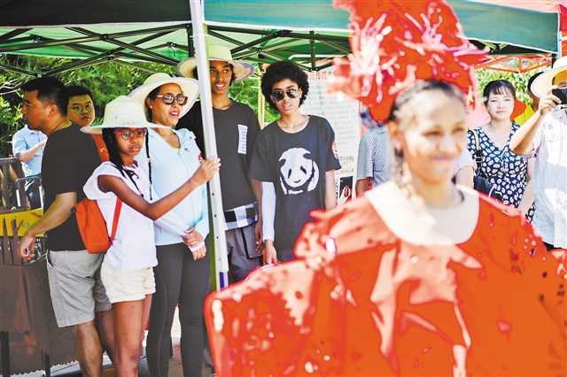 8月23日,重慶市巴南區接龍鎮龍泉谷度假區,“愛在七夕浪漫接龍——2020年老外@Chongqing·體驗非遺暨我們的節日·七夕”活動現場,外國友人穿上剪紙衣裳吸引了同伴目光。 記者 謝智強 攝/視覺重慶