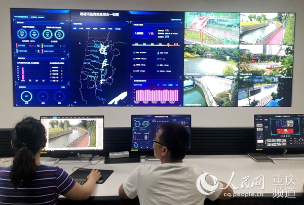 走進跳磴河運營指揮中心,墻上掛著的幾塊大型屏幕,不停閃爍著各種數據。大屏幕上還有視頻監控畫面,可以清晰地看到流域內的一草一木,任何細小的情況都一覽無余。