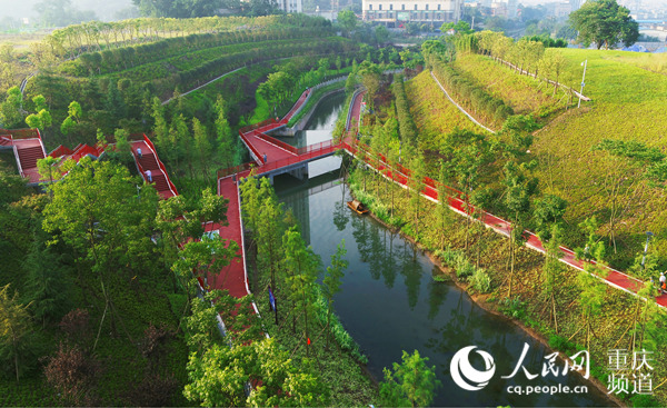 近年來,重慶市九龍坡區累計投入16.5億元,對境內14.15公里跳磴河主河道、44.48平方公里流域面積進行了兩期綜合整治。如今的跳磴河,河水清澈見底,兩岸景色宜人,10個濱河公園已成為市民休閑健身的好去處,一幅生態文明新畫卷正在徐徐展開。