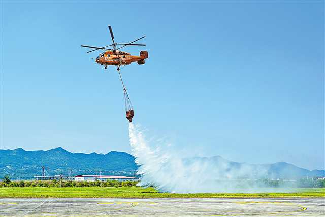 八月二十八日,市應急管理局航空救援總隊空勤大隊正在進行直升機吊桶滅火演練。記者 解小溪 攝\視覺重慶