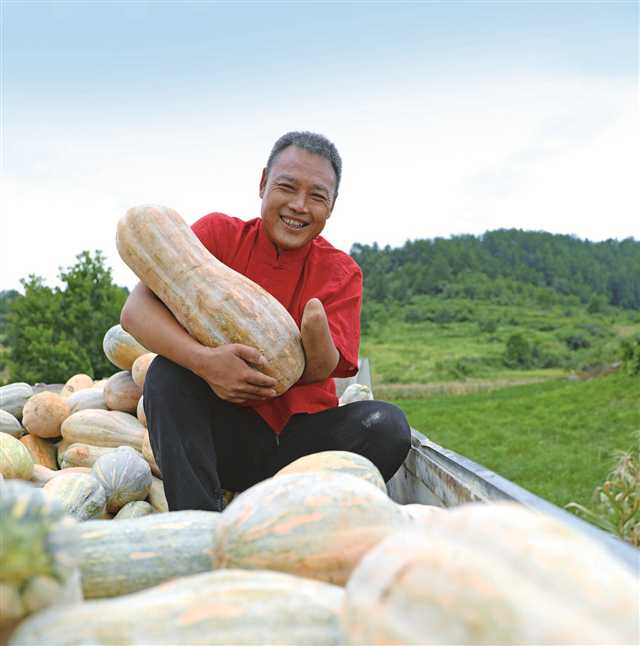 楊忠是脫貧戶,今年,在他的帶動下,趙昌信種了10畝蜜本南瓜。像趙昌信一樣,今年在楊忠的帶動下,當地50多戶村民種植了蜜本南瓜,共計1300多畝。