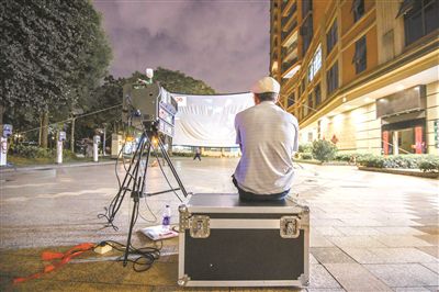 10月8日晚上,在白云區一小區內,黃樹輝放了一場露天電影——《戰狼》。一位六旬的爺爺提前半個小時就拿著凳子來到現場,他說仿佛回到了年輕的時候,要是這樣的電影一個月能放一場就好了。將近晚上9點,影片結束,觀眾散去,黃樹輝和兒子收拾著工具,最后離場。(記者 何鉆瑩、蘇韻樺)