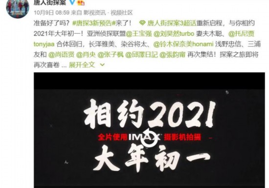 不過此前,《唐人街探案3》在撤檔后一直遲遲沒有定檔。受疫情沖擊,今年萬達、華誼兄弟、北京文化等各大影視公司都呈虧損狀態。作為一部高投資的商業大片,《唐人街探案3》能否取得高票房也變得至關重要。根據前兩部的表現來看,不少網友預測,該片會是2021年春節檔票房冠軍的有力競爭者。