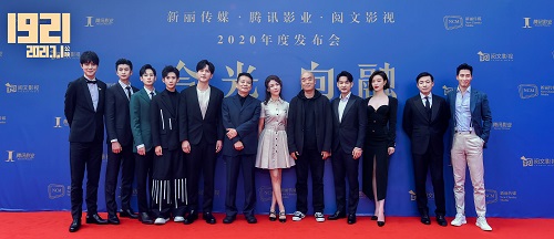 人民網上海10月22日電 10月19日,由騰訊影業、上影集團、上海三次元影業、閱文集團、貓眼影業共同出品,黃建新、鄭大圣聯合導演的電影《1921》在騰訊影業、新麗傳媒、閱文影視舉行的“合光·向融”2020年度發布會上宣布將于2021年7月1日全國公映,并首次曝光了主演陣容——由黃軒、袁文康、祖峰、竇驍、王仁君、張頌文、劉家祎、王俊凱、韓東君、劉昊然、張超、張云龍、胡先煦飾演中共一大代表。據悉,為了更貼近真實人物,演員除了要年齡符合,更要“形神兼備”,F場黃建新導演表示,除了啟用全新的年輕演員陣容,“會給大家帶來全新的故事,會用更電影化的敘事方式,以及充沛的生活情感,讓這段歷史更有電影的本質!