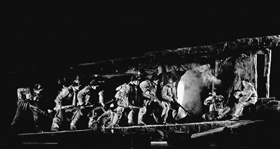 舞臺上的震撼大都靠強炫光、多媒體投影來營造,而《上甘嶺》的舞臺則在此基礎上多了爆破效果,炊事班長老馬在兄弟們相繼犧牲后,獨自扛起滿是彈孔的紅旗走上陣地,一陣猛烈的炮火便是由影片《八佰》的爆破團隊完成的。