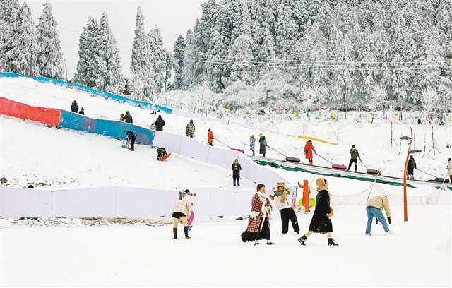 1月2日,游客在豐都縣南天湖冰雪樂園游玩。元旦小長假第二天,當地迎來了上萬游客。通訊員 陳勇 攝/視覺重慶
