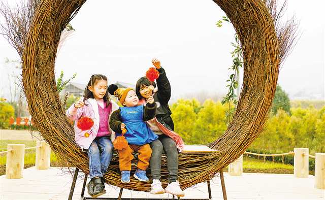 一月三日,孩子們在北碚區柳蔭鎮東升村玩耍。元旦小長假期間,不少市民前往東升村領略田園風光。特約攝影 秦廷富\視覺重慶