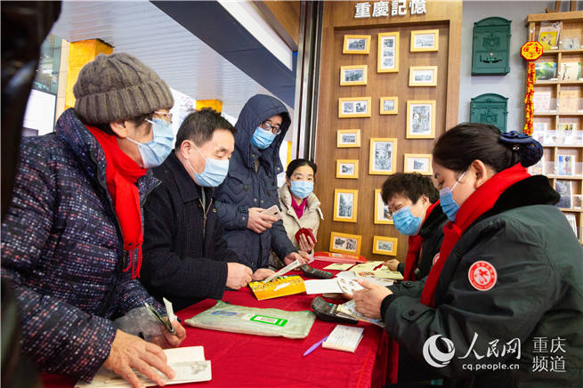 重慶解放碑主題郵局前,辛丑年生肖郵票搶購熱潮。 朱亞坤攝