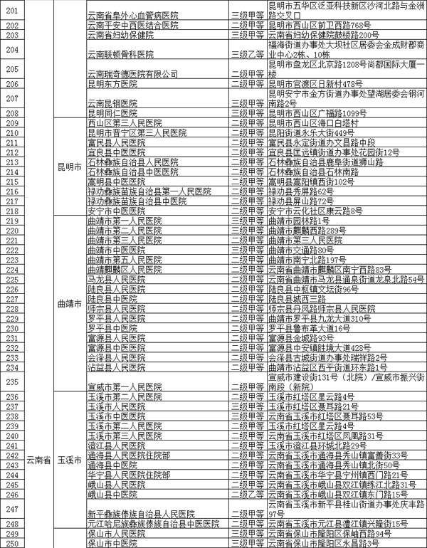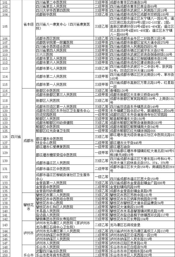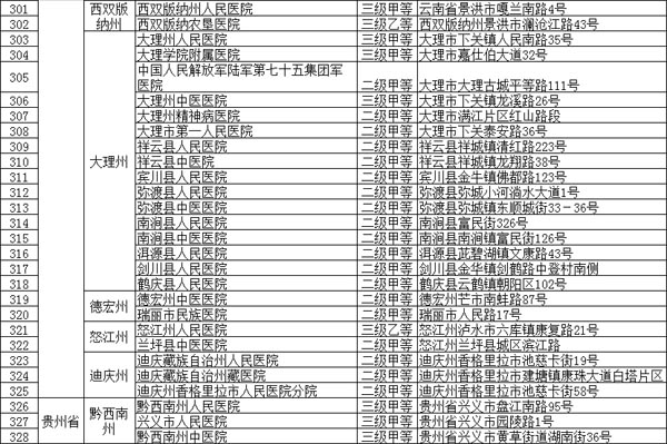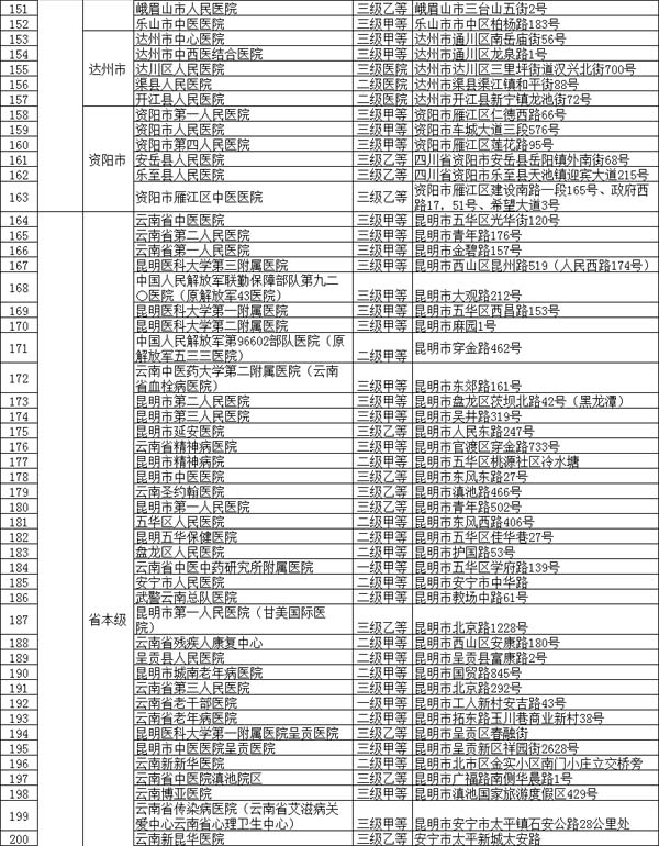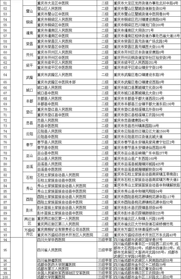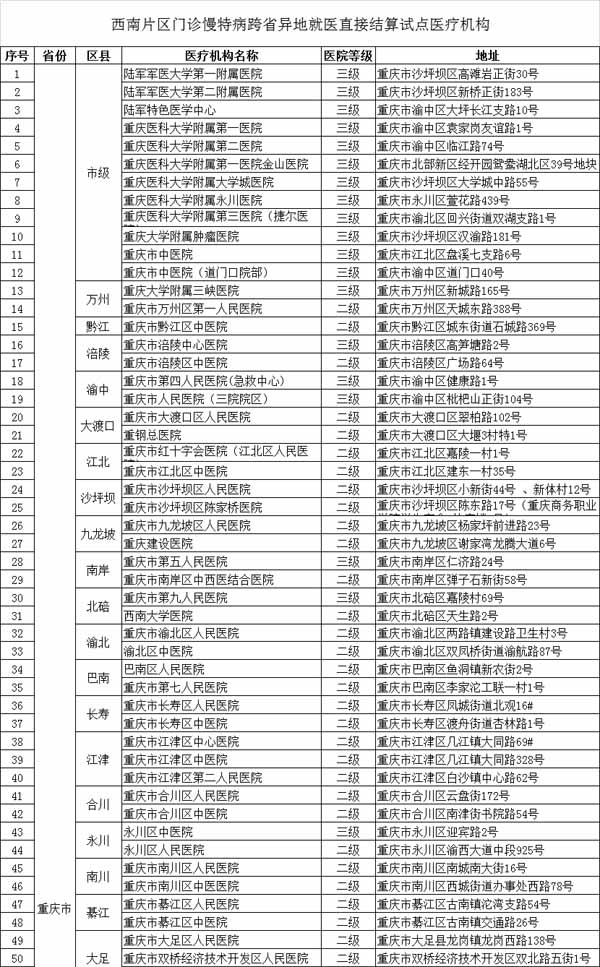 西南片區門診慢特病跨省異地就醫直接結算試點醫療機構: