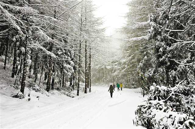 1月7日,游客在巫山縣梨子坪森林公園賞雪。6日夜間,巫山海拔600米以上的中高山地區普降瑞雪,大地銀裝素裹,吸引了不少游客賞雪游玩。特約攝影 王忠虎/視覺重慶