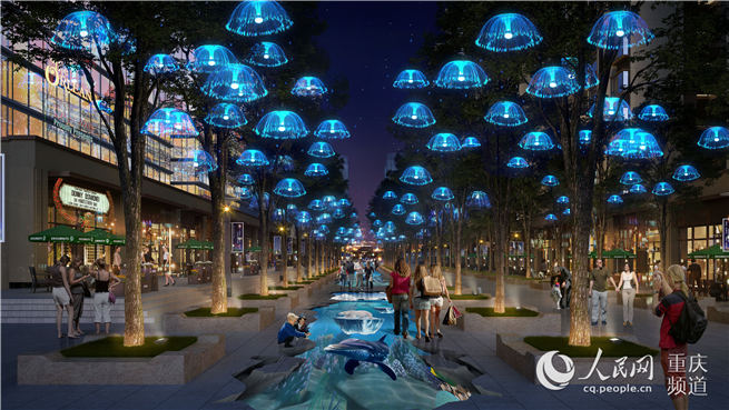 環境綜合整治后南坪步行街櫸樹林廣場效果圖。 受訪單位供圖