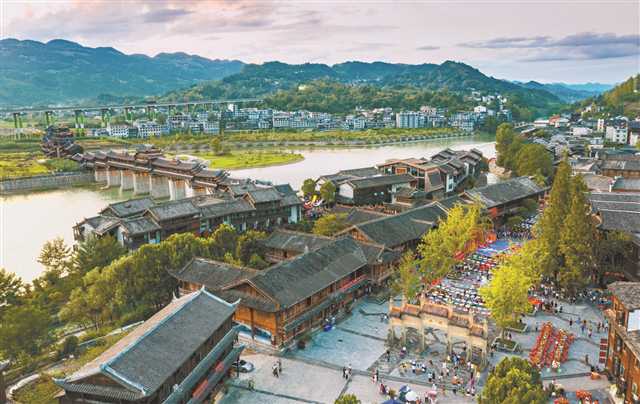 濯水古鎮全景。圖片由黔江區文旅委提供
