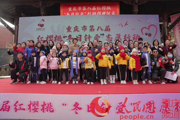 人民網重慶1月15日電(陳琦、黃軍) 你織毛衣、我打手套、她縫帽子……一年中最冷的時候,迎來最暖心的愛。1月14日,重慶市第八屆紅櫻桃“冬日針愛”志愿行動捐贈儀式在渝中區七星崗通遠門城墻公園舉行,為高寒凝凍山區留守兒童、困境兒童送去溫暖。