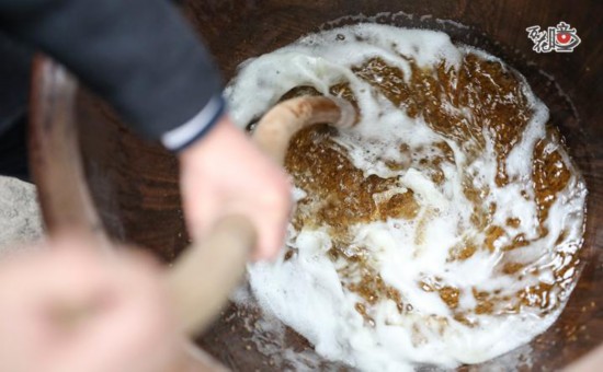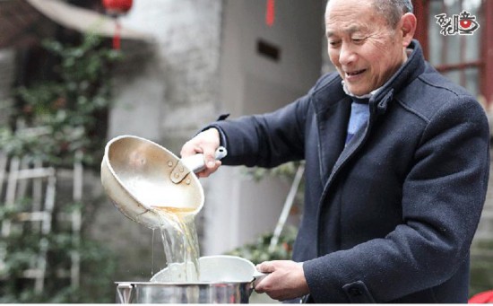 發酵完成后,就是攪拌!1、2、3……299、300!边@是賈紫焰手握桂花木棒攪拌桂花酒的次數。300下,一次都不能少。但問起原因,賈紫焰卻不記得了,只說這是祖輩流傳下來的傳統技法,不能偷懶。而上一根承擔攪拌使命的桂花木棒已經60多年了。