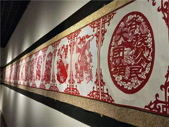 2019年,曾德元就完成了56個民族的構圖,如何快速呈現剪紙作品又需要大量的時間!2020年疫情來襲,在家幾個月就給了我沉下心來完成作品的機會!痹略f,他用了半年將56個民族剪完,所有民族剪紙作品拼接在一起共24米長。